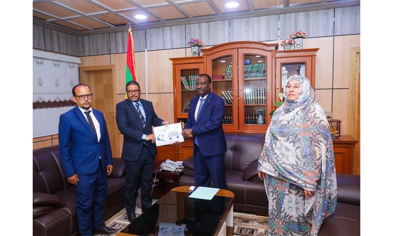 استقبل وزير العدل محمد ولد أسويدات، بمكتبه في نواكشوط اليوم الثلاثاء، الأمين العام لنادي القضاة الموريتانيين مولاي أعل ولد مولاي أعلي، الذي سلمه نسخة من التقرير السنوي للنادي الموجه إلى رئيس الجمهورية بوصفه رئيساً للمجلس الأعلى للقضاء.